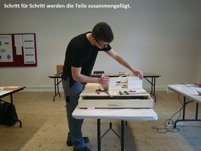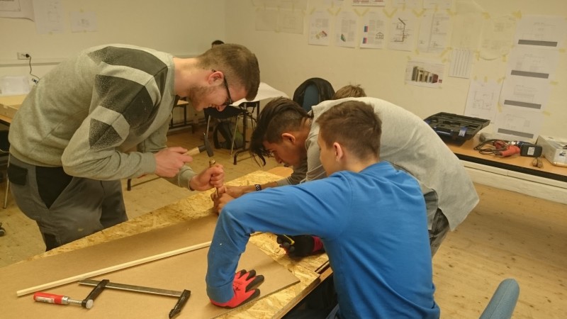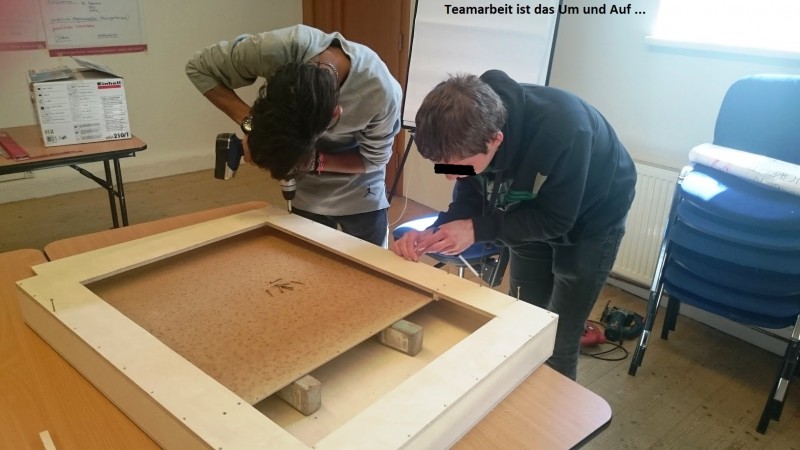 Neben dem Umgang mit verschiedenen Werkzeugen lernten die Jugendlichen die unterschiedlichen Materialien kennen und wie sich in präziser Teamarbeit alles zu einem gemeinsamen Ganzen zusammenfügen lässt. Was alleine nicht zu schaffen ist oder zu kompliziert sein kann, schaffen viele fleißige Hände und kluge Köpfe in kurzer Zeit und das Ergebnis lässt sich sehen.