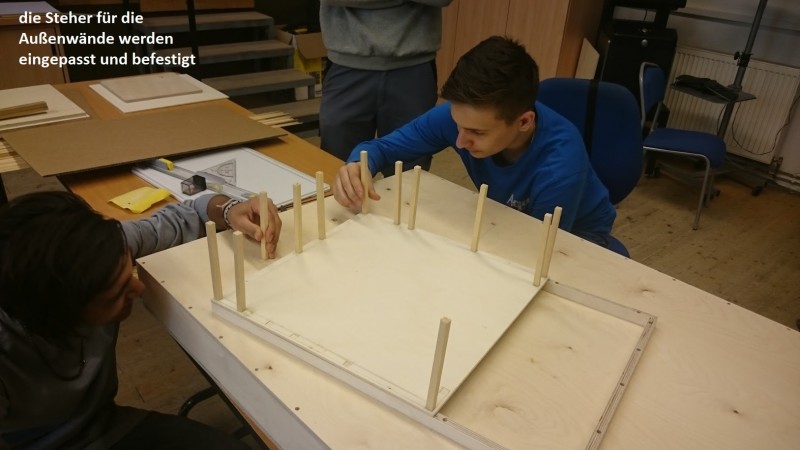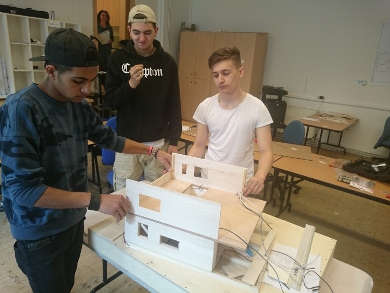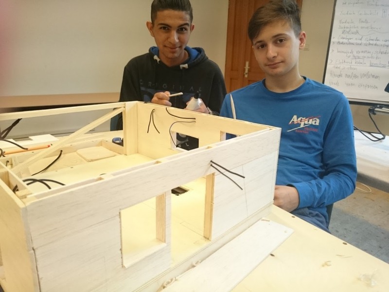 Die Maßnahme bietet interessierten Jugendlichen die Möglichkeit, Berufe rund um den Metall-Bereich sowie im Bereich Holzarbeiten kennenzulernen. Dazu wurde mit der Architektin Katharina Melchert ein Realplan gezeichnet nach welchem wir im Anschluss ein detailliertes Modell aus Holz mit unterschiedlichen, teils simulierten Funktionen errichteten. Gerald Kummer vom SV-Büro Csmarits leitete die Gruppe an und gemeinsam ließen wir ein ansehnliches Haus im Maßstab 1:20 entstehen.