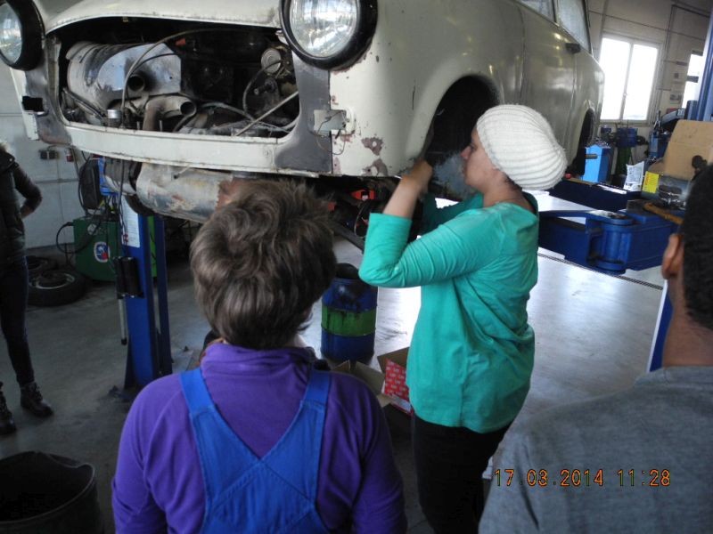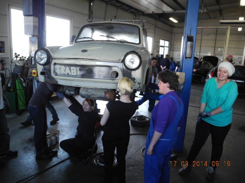 Es wurde seitens Frau Renate Wolf Houszka diesmal eine Initiative gestartet, wiederum im Auftrag des AMS, wo arbeitslose Jugendliche nun die Möglichkeit hatten den Elektriker Beruf, den Metallerberuf sowie wiederum den KFZ Beruf kennen zu lernen. Das SV- Büro Hermann Csmarits übernahm mit dem Kollegen Christian Eissner den KFZ-Bereich und schaffte einen alten Trabant an, der wiederum bis zur letzten Schraube zerlegt wurde. Leider schafften wir es aus Zeitgründen nicht, das Fahrzeug fertig zu Restaurieren. Aber was nicht ist, kann ja noch werden. Bedanken möchte ich mich beim Autohaus Günter Hausmann wo das Projekt durchgeführt wurde.